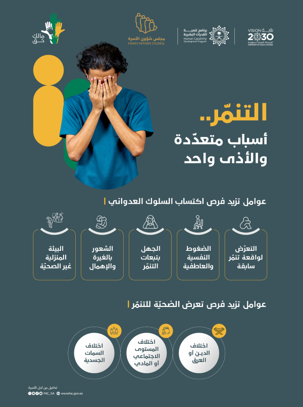 تم إطلاق الحملة من قبل مجلس شؤون الأسرة ضمن مبادرات برنامج تنمية القدرات البشرية، وتهدف إلى تعزيز الوعي بمفهوم التنمر وتزويد الأسرة بالمهارات والأدوات اللازمة للوقاية منه والتصدي له.